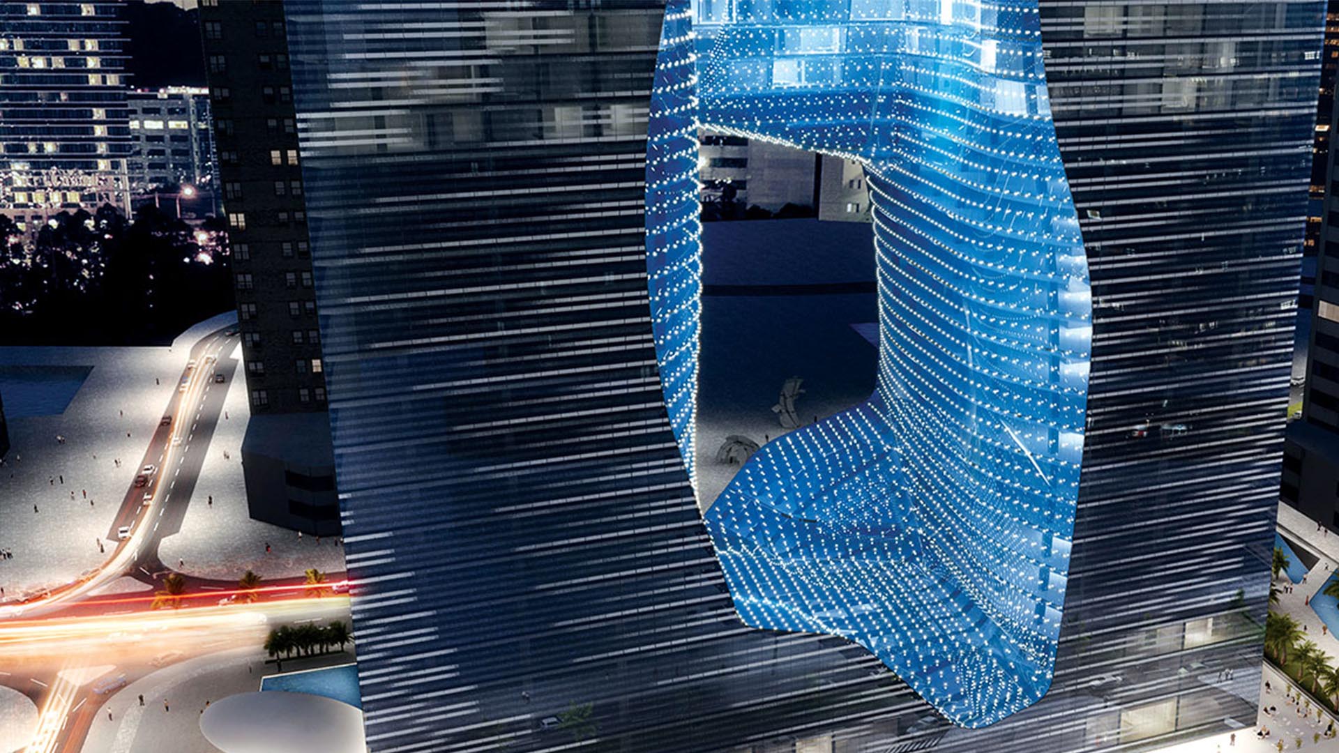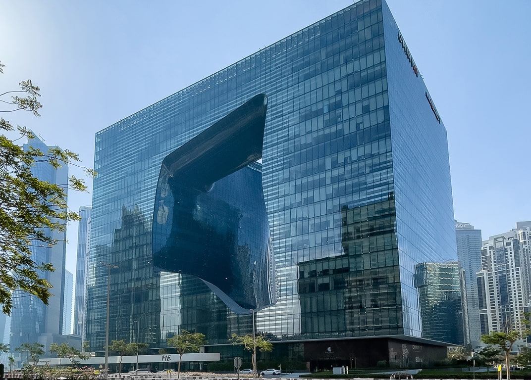 L'Opus est l'un des bâtiments emblématiques du plan directeur de Dubaï. Conçu comme deux structures formant un cube unique avec un vide de forme libre qui semble flotter au-dessus du sol, il est entièrement recouvert d'une façade réfléchissante pixélisée pendant la journée, tandis que la nuit, le vide est inondé de lumière et le cube semble « disparaître ».